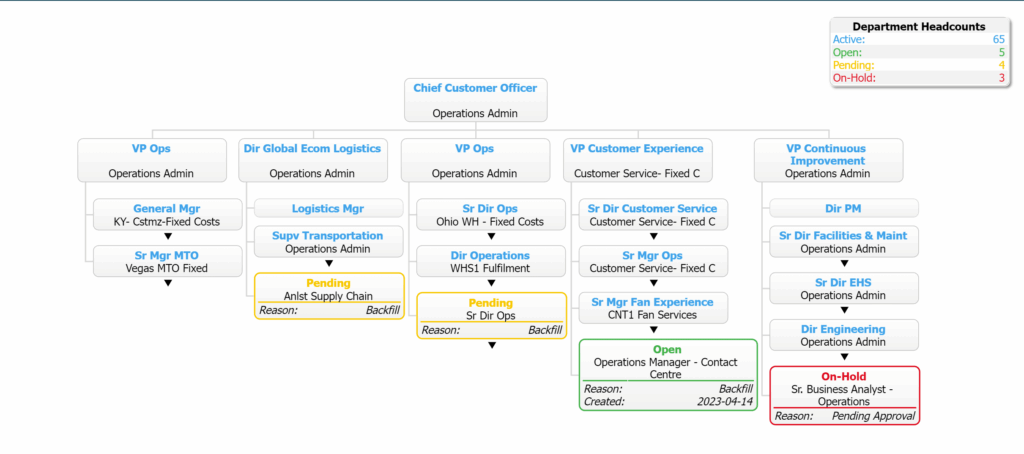 In the competitive landscape of talent acquisition, having a clear understanding of your recruitment strategy is essential. OrgChart enables you to visualize your current and future open positions, as well as identify which positions have been difficult to fill, so that you know where to focus your efforts for maximum efficiency.