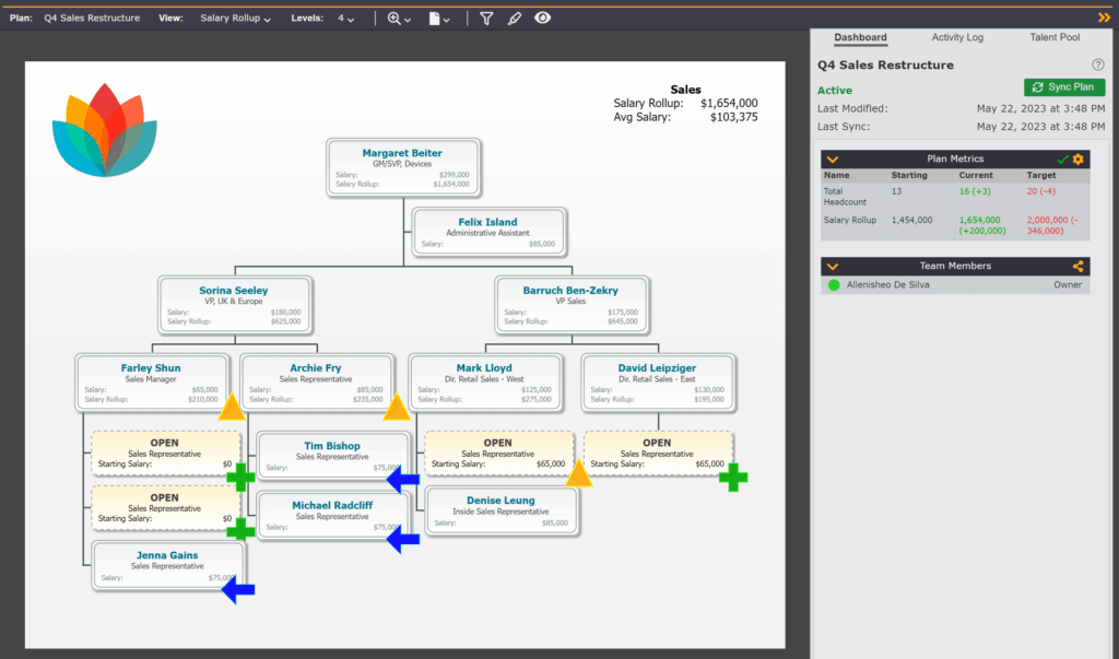 OrgChart isn’t just about creating visually engaging charts. It goes beyond that to offer visibility, insight, and vision crucial for today’s HR professionals. With OrgChart, you can model future organizational changes, track key metrics, set goals, and align your organizational structure with your strategic goals.