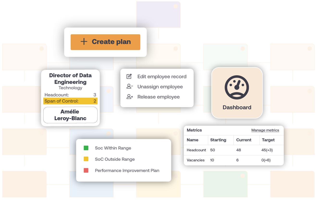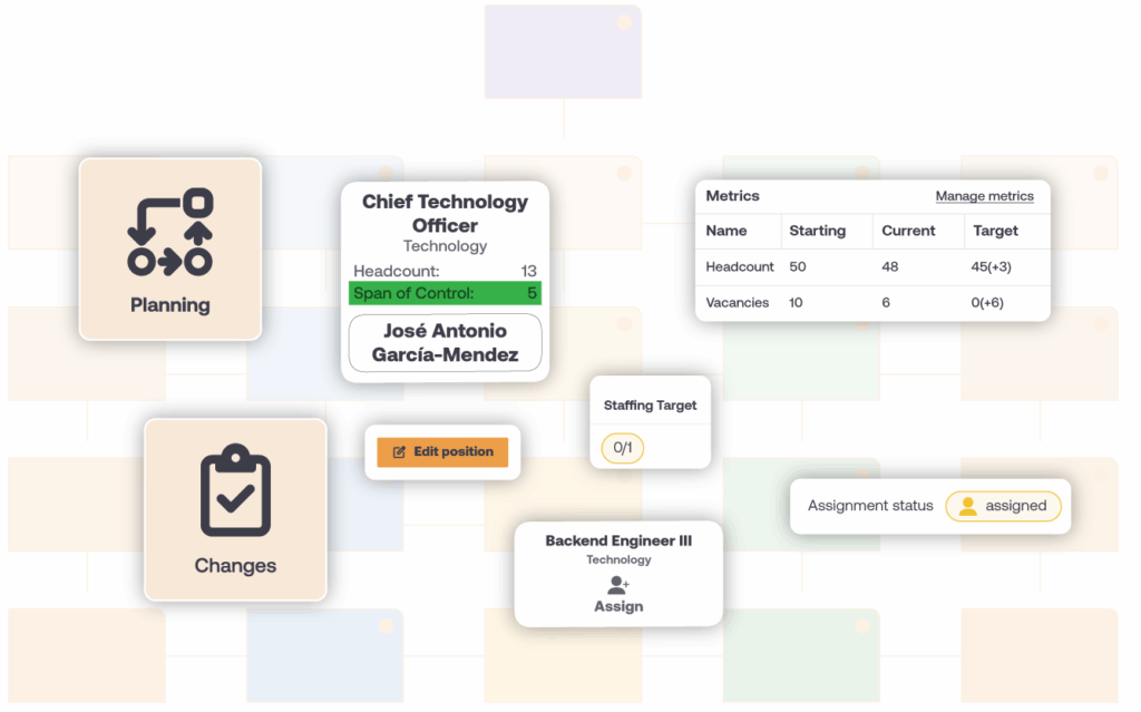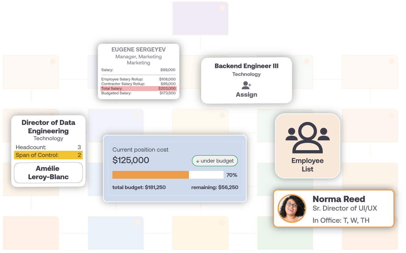 Create position-based org charts based on live data from your HRIS.